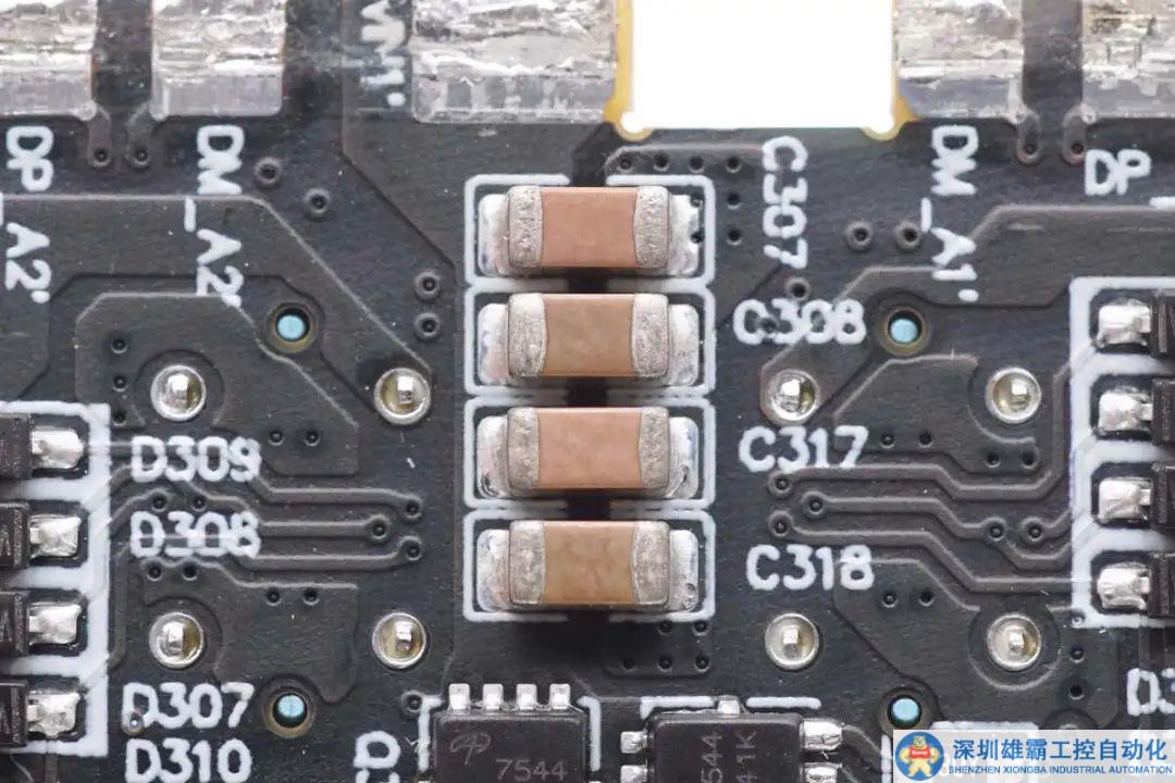 四顆MLCC濾波電容特寫。