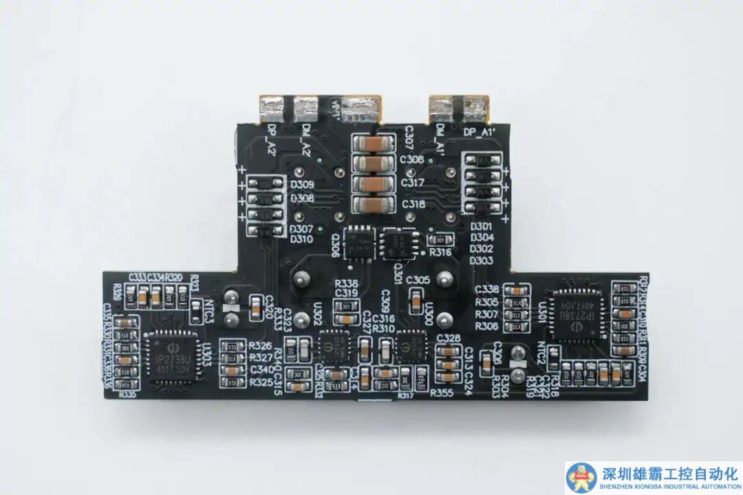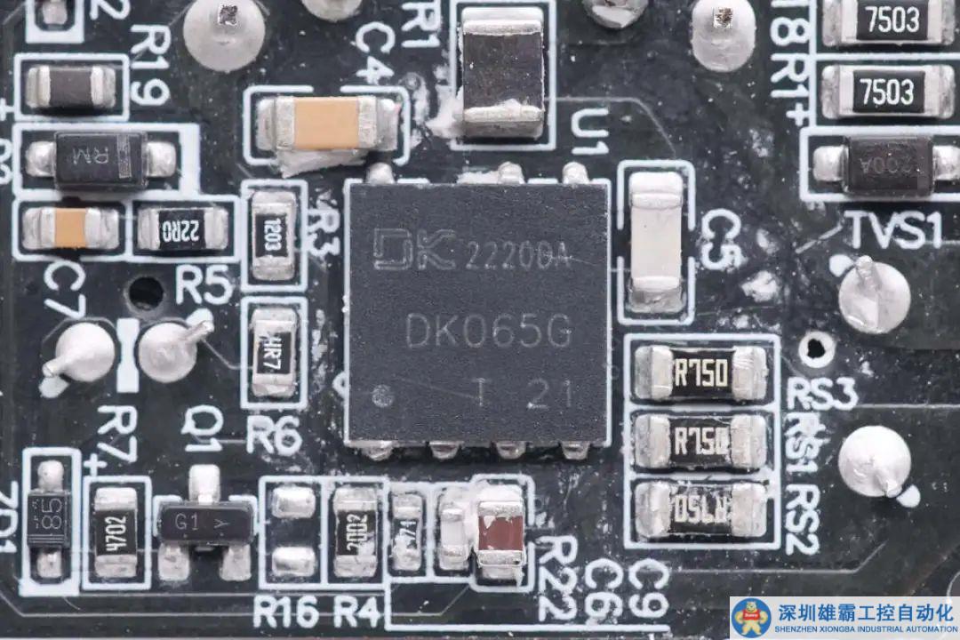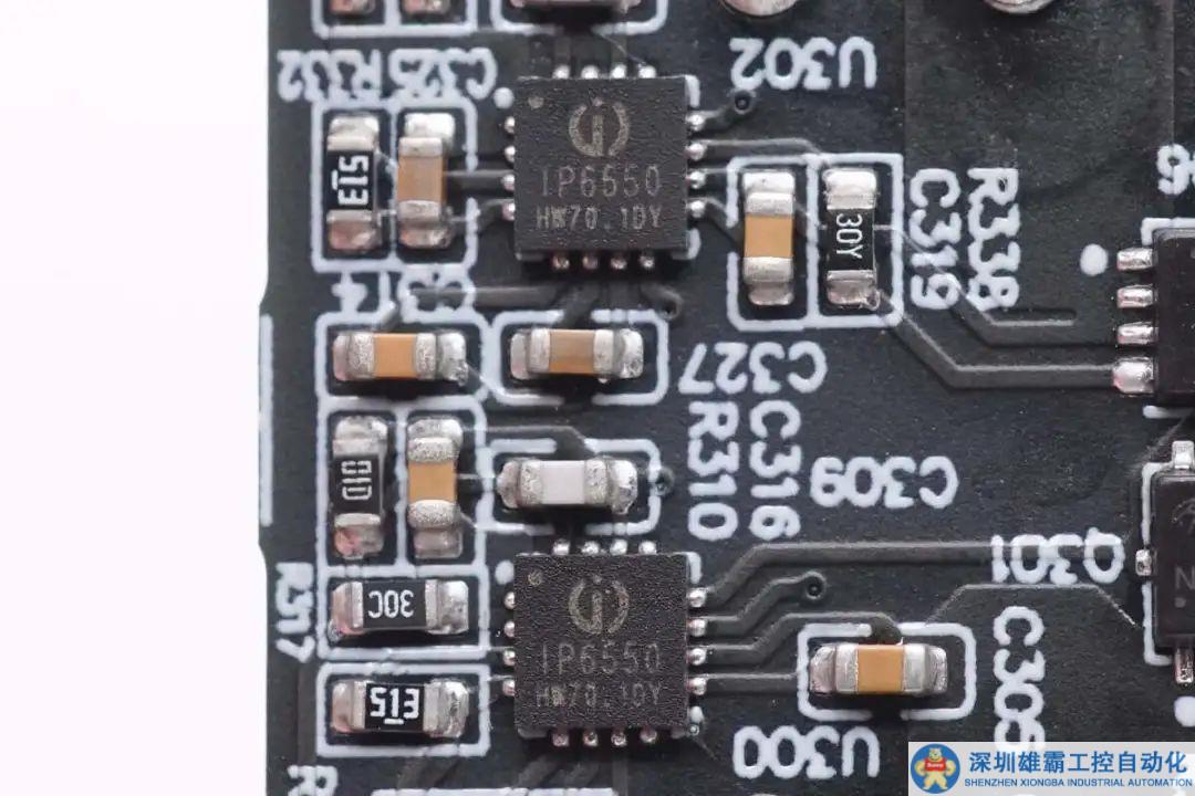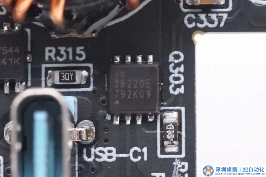 背面焊接兩顆協(xié)議芯片和對應的降壓控制器和開關管,還焊接TVS二極管和濾波電容。