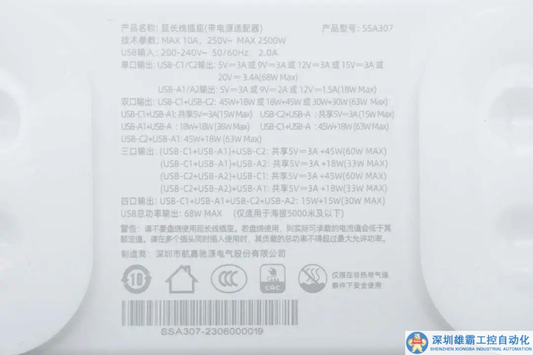 底部外殼上印有產品詳細參數