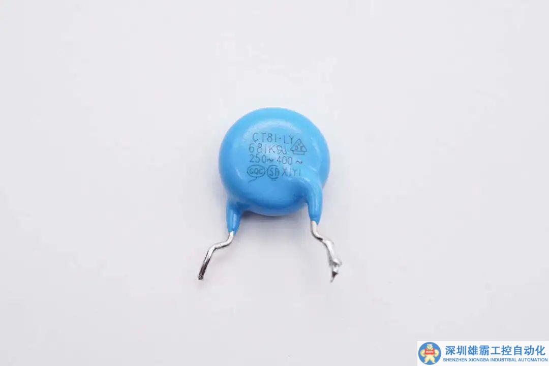 插件式藍色Y電容特寫。