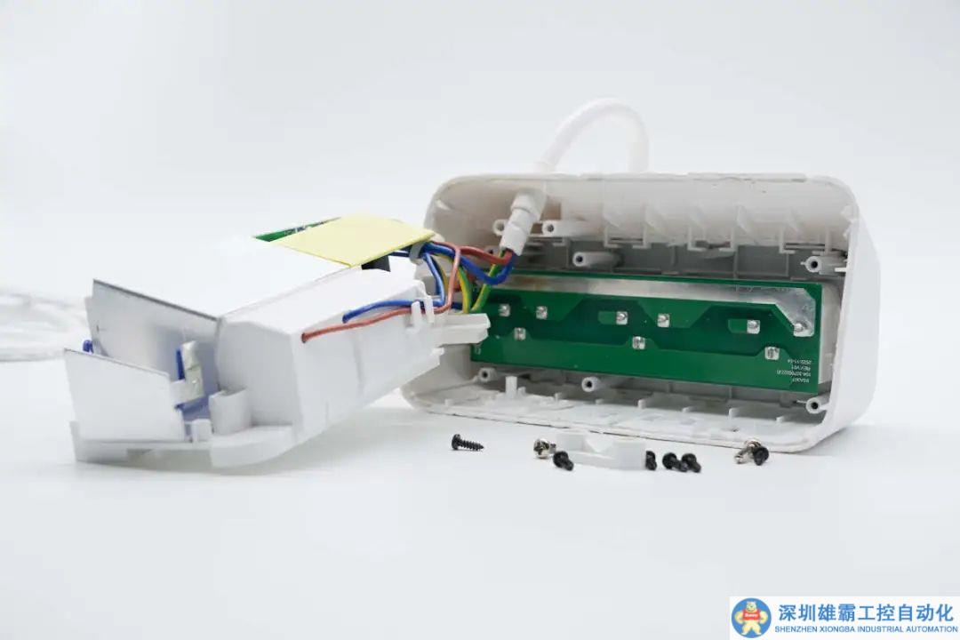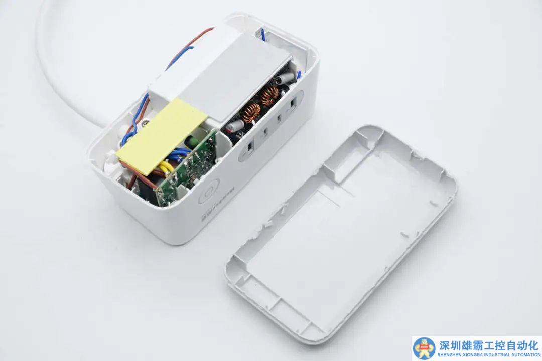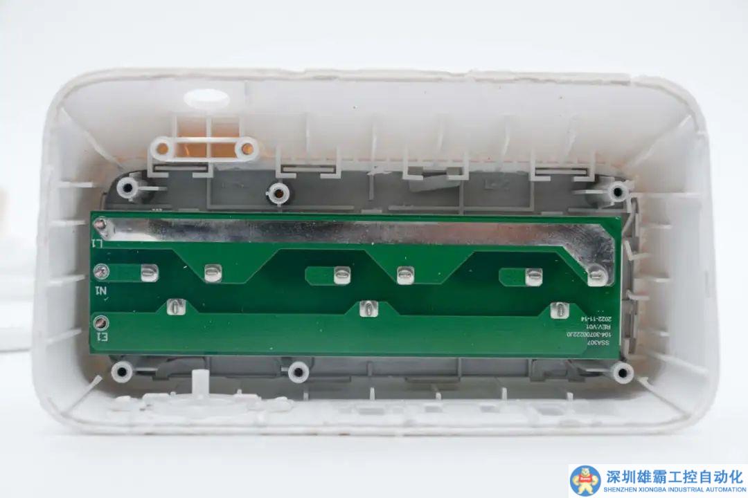 殼體內部一覽,在內部為插座模塊,側邊為控制供電的按鍵。