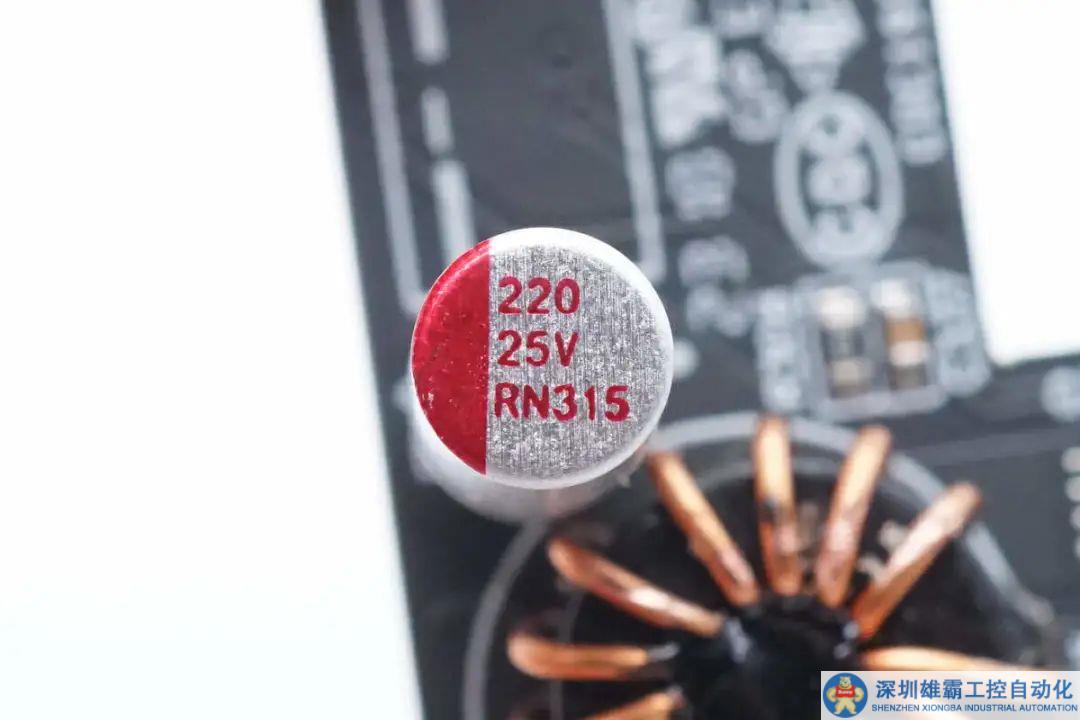 輸出濾波電容來自PolyCap柏瑞凱,為RN系列小尺寸固態(tài)電容,規(guī)格為25V 220μF。