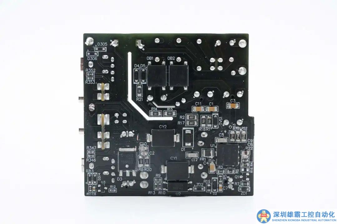 PCBA模塊背面焊接整流橋,氮化鎵合封芯片,反饋光耦,貼片Y電容和同步整流芯片。
