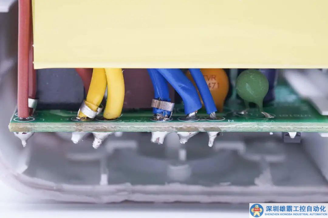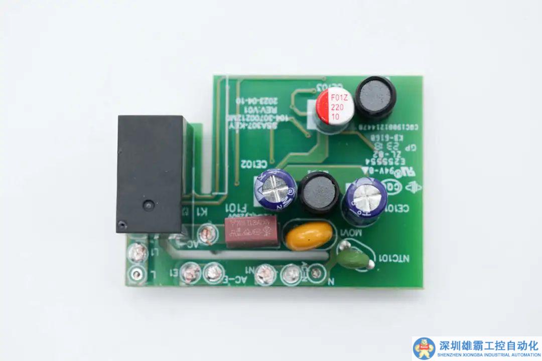供電控制PCBA模塊焊接保險絲,NTC熱敏電阻,壓敏電阻,濾波電容,降壓電感和繼電器。