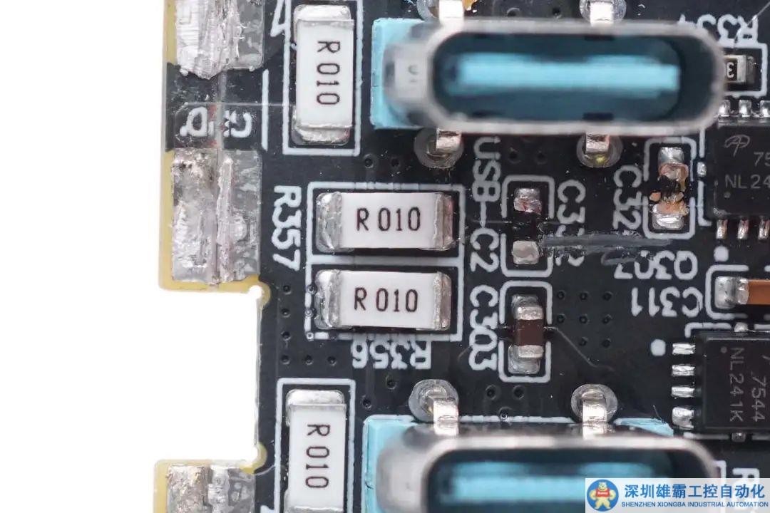 四顆10mΩ取樣電阻用于兩個USB-C和兩個USB-A口電流檢測。