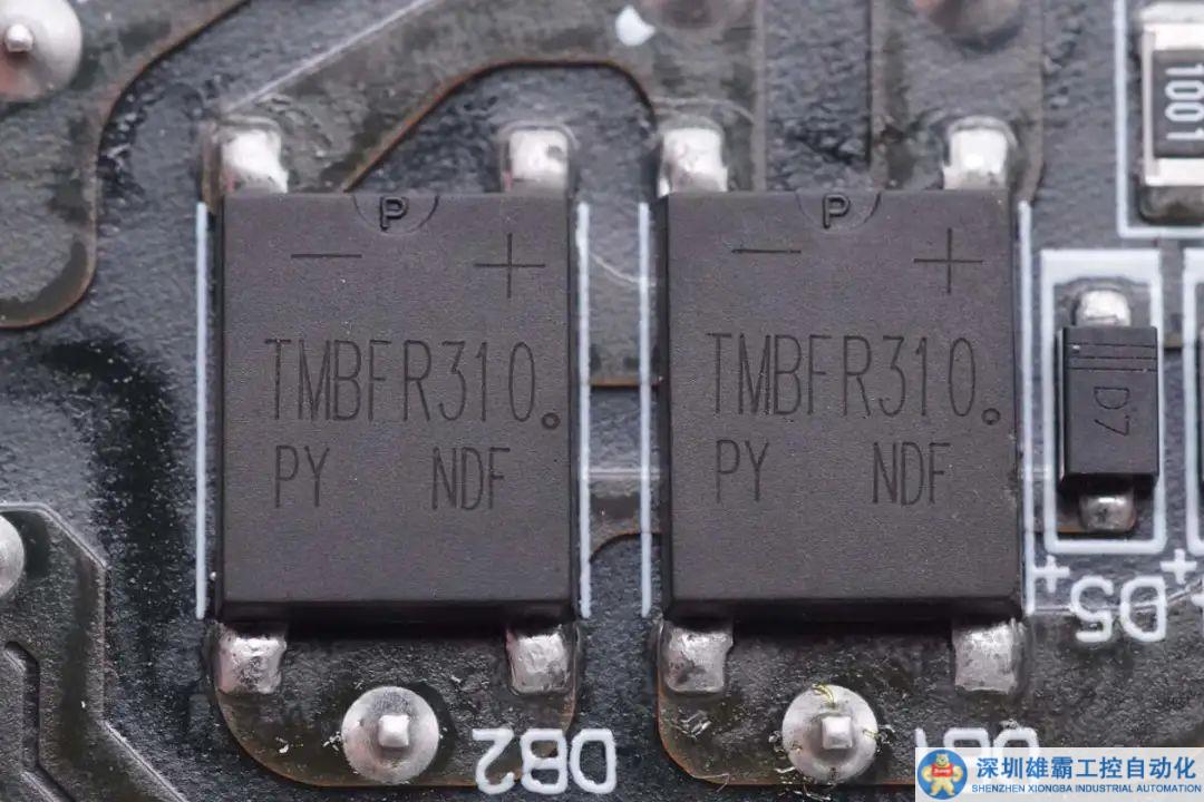 整流橋來自PY平偉,型號TMBFR310,規(guī)格為3A 1000V,使用兩顆半橋連接,均攤發(fā)熱。