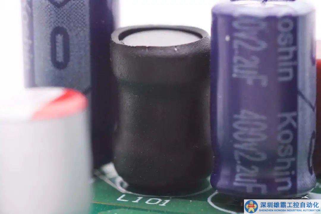 兩顆高壓濾波電容和濾波電感特寫。