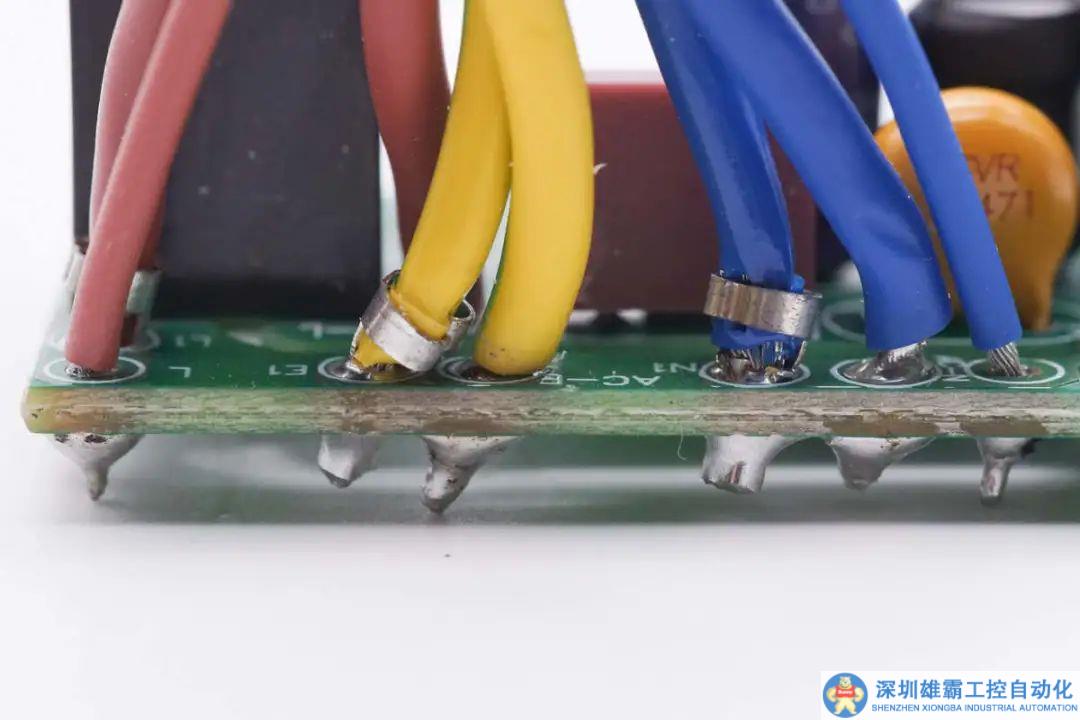 PCBA模塊輸入端一覽,焊接保險絲,NTC熱敏電阻,共模電感和高壓濾波電容。