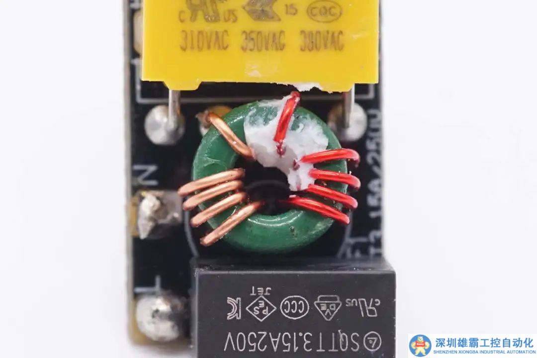 焊接取下輸入端小板,小板正面焊接保險(xiǎn)絲,共模電感和安規(guī)X2電容。