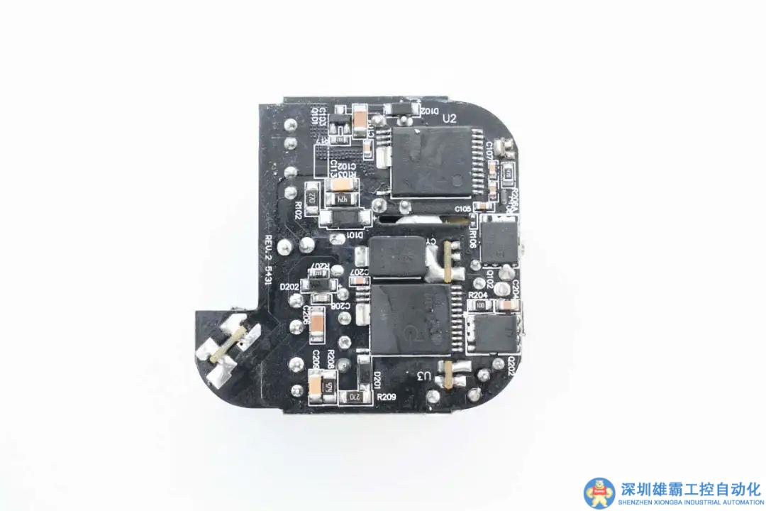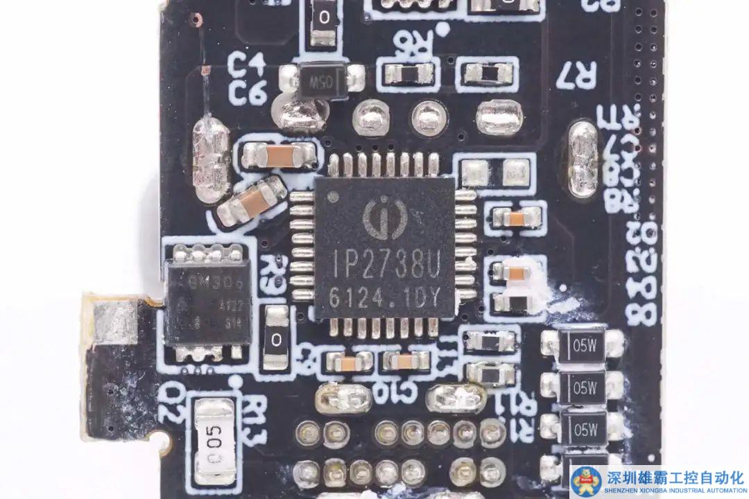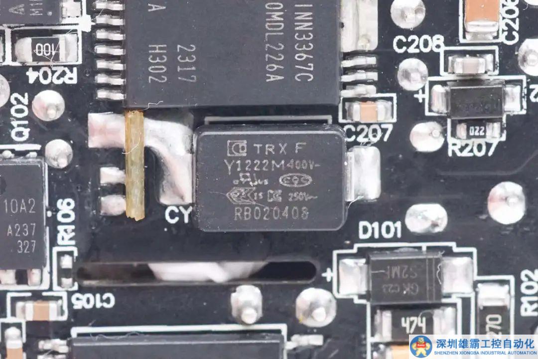 PCBA模塊背面焊接整流橋,兩顆PI的高集成電源芯片和對(duì)應(yīng)的同步整流管,在兩顆電源芯片中間焊接一顆貼片Y電容。