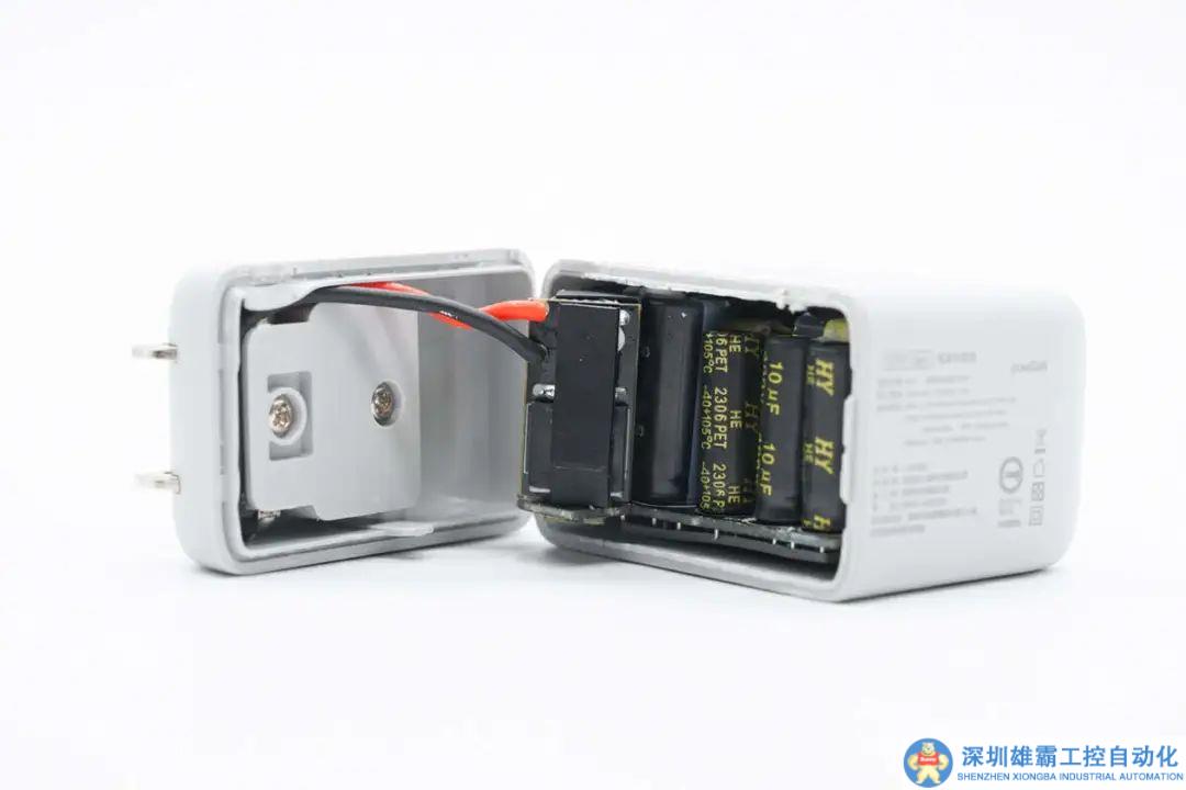 首先沿殼體接縫拆開充電器外殼,內(nèi)部PCBA模塊通過導(dǎo)線焊接連接折疊插腳。