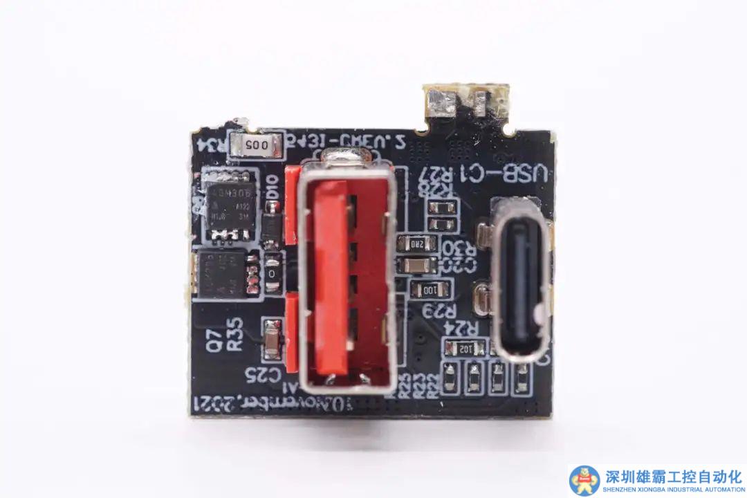 輸出協(xié)議小板正面焊接USB-C母座,USB-A母座和兩顆VBUS開關(guān)管。