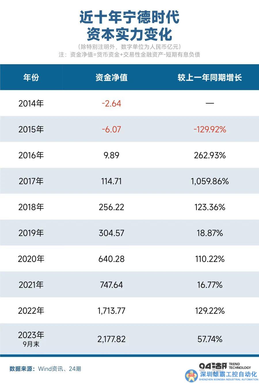 2016年以來寧德時代資本實力一直保持增長趨勢,截至2023年9月末,其資金凈值達(dá)2177.82億元,同比增長57.74%。