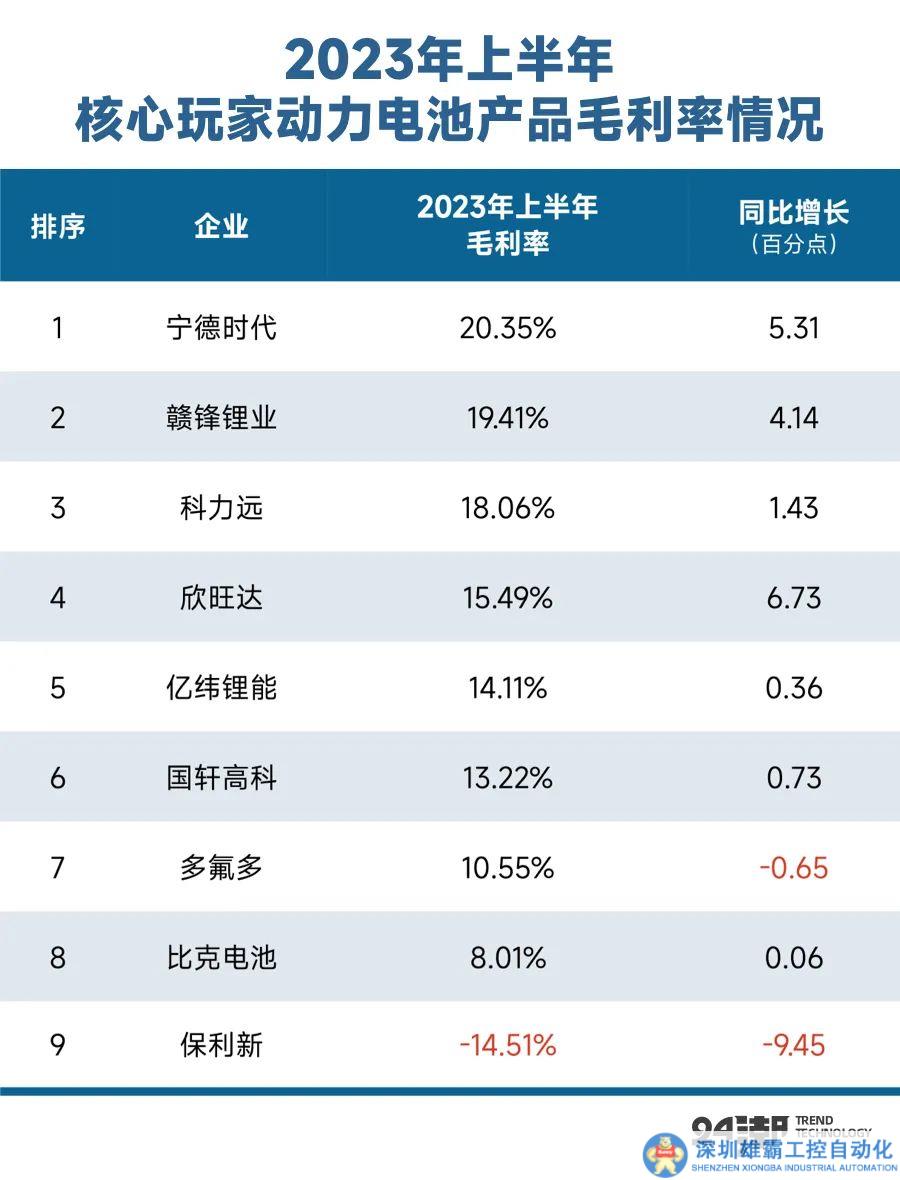 前瞻性的一體化的布局是寧德時代擁有更強(qiáng)盈利能力的因素之一,以2023年上半年數(shù)據(jù)為例,寧德時代動力電池產(chǎn)品毛利率為20.35%,同比增長了5.31個百分點,無論是毛利率還是增幅均遠(yuǎn)超核心競爭對手億緯鋰能與國軒高科。