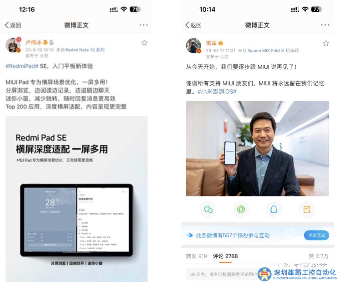 我們從雷軍本人的微博中也可以看到小米發(fā)布的澎湃 OS 的詭異。