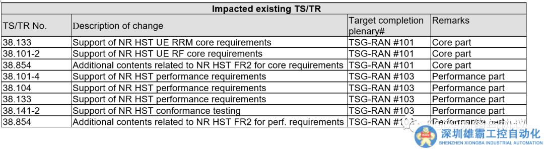 對相應(yīng)TR/TS規(guī)范文本的影響: