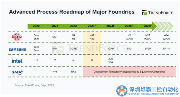 臺(tái)積電、三星、英特爾中芯國(guó)際的芯片制程發(fā)展線