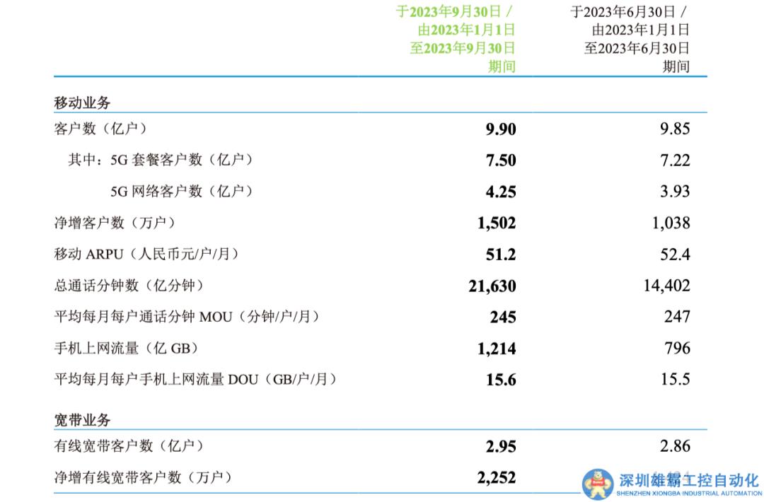 [2]?中國移動《中國移動有限公司2023年第三季度報告》,2023