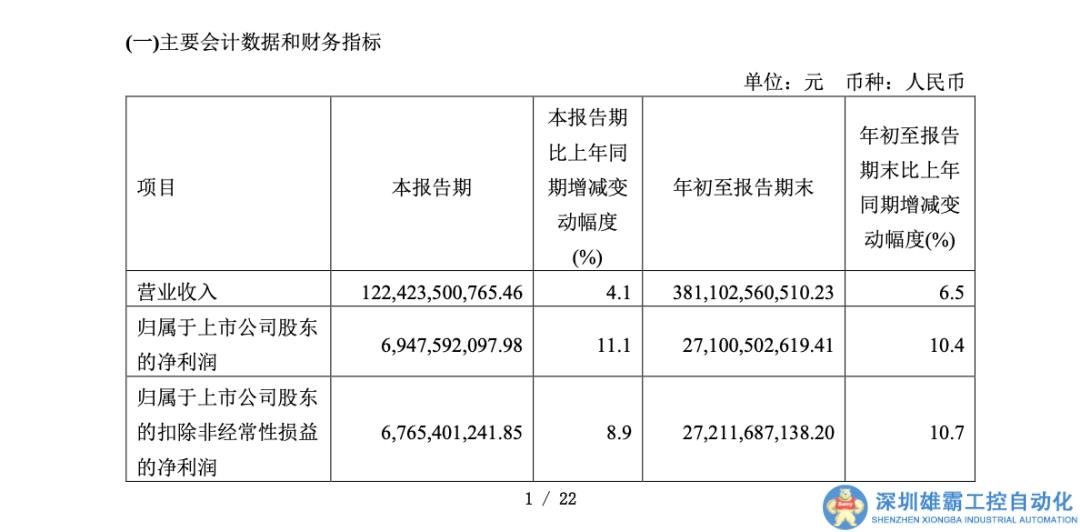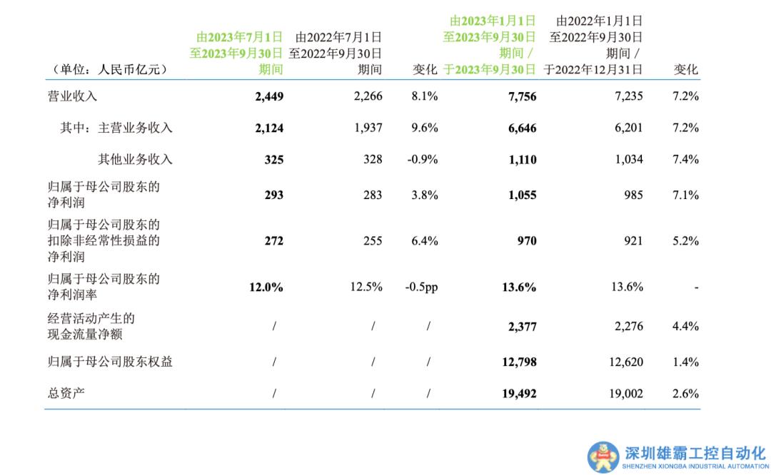 中國電信前三季度營業(yè)收入為人民幣3,811.03億元,較去年同期增長6.5%,其中服務(wù)收入為人民幣3,497.43億元,較去年同期增長6.4%。歸屬于上市公司股東的凈利潤為人民幣271.01億元,較去年同期增長10.4%。歸屬于上市公司股東的扣除非經(jīng)常性損益的凈利潤為人民幣272.12億元,較去年同期增長10.7%?;久抗墒找鏋槿嗣駧?.30元。