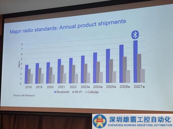 藍(lán)牙技術(shù)聯(lián)盟首席市場(chǎng)官Ken Kolderup表示:“當(dāng)前,在一年當(dāng)中任何一個(gè)時(shí)刻,我們都有超過(guò)50個(gè)更新項(xiàng)目在進(jìn)行;僅僅在2022年一年就有超過(guò)7萬(wàn)多新產(chǎn)品完成了藍(lán)牙資格認(rèn)證流程;藍(lán)牙產(chǎn)品現(xiàn)在每年出貨量也超過(guò)了50億臺(tái),預(yù)計(jì)到2027年將達(dá)到75億臺(tái),比Wi-Fi高出35%,比蜂窩網(wǎng)絡(luò)高出300%?!?/p>