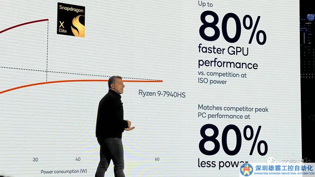 正如前面所介紹的,驍龍X Elite不僅性能強(qiáng)大,功耗也遠(yuǎn)低于競(jìng)品。官方資料顯示,這款專為各種PC設(shè)計(jì)的芯片,最大可配置熱設(shè)計(jì)功率(TDP)為50瓦。相比傳統(tǒng)的性能相近的PC,功耗僅只有1/3,這也意味著其續(xù)航能力將有望提升2倍。
