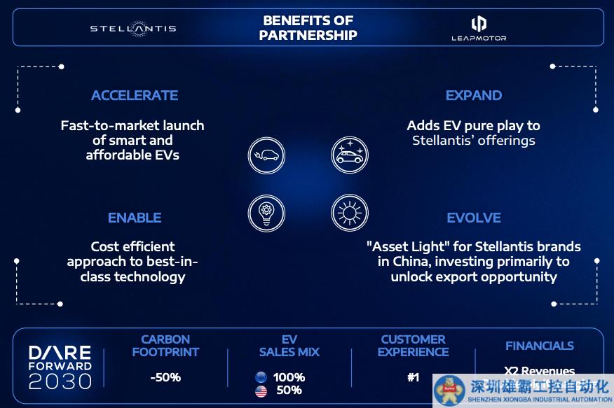 Stellantis選擇與零跑合作,主要是因?yàn)榱闩茉?5-20萬價(jià)格區(qū)間的車型市場具有先進(jìn)的技術(shù)、快速開發(fā)能力和高性價(jià)比產(chǎn)品架構(gòu),這與Stellantis集團(tuán)的期望是一致的。這一戰(zhàn)略合作可以助力Stellantis實(shí)現(xiàn)“Dare Forward 2030”電氣化目標(biāo):即到2030年,集團(tuán)在歐洲售出的所有乘用車均為純電動(dòng)汽車,在美國售出的乘用車及輕型卡車中有50%為純電動(dòng)汽車。