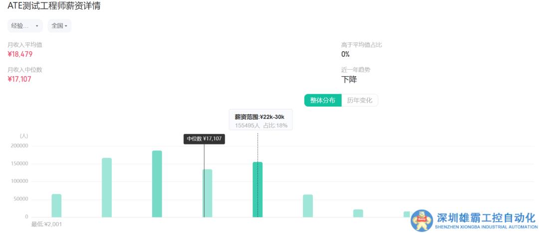 ATE測(cè)試工程師崗的平均月薪18k+,中位數(shù)為17k+,其中12k-17k工資占比最多,約22%。