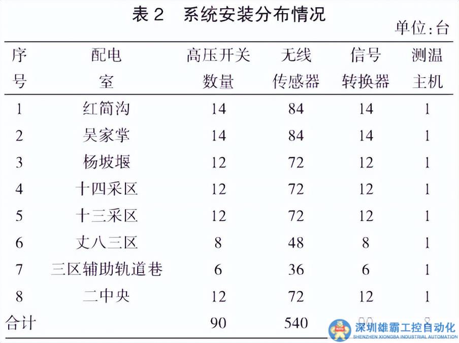 陽煤一礦井下高壓配電柜測溫項目涉及8個配電室共計8套測溫主機。具體分布情況如表2所示。