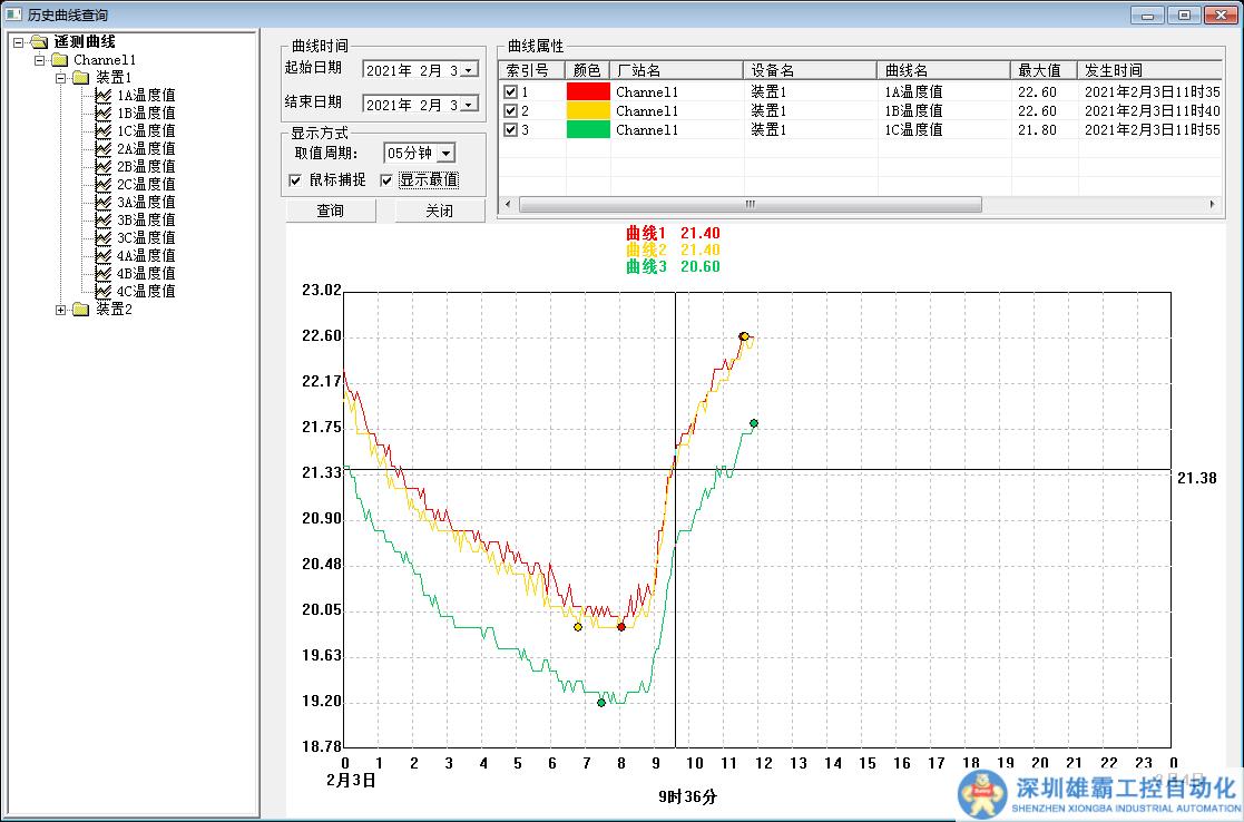 ③歷史數(shù)據(jù)查詢??蛇x擇查詢歷史數(shù)據(jù)的類型,即歷史曲線、歷史值、月*高溫度,同時可現(xiàn)場查詢?nèi)我庖粋€測溫點的溫度數(shù)據(jù),以及查詢的年度、月份和天數(shù)。數(shù)據(jù)庫至少可保存1a歷史數(shù)據(jù),并可查詢*近1個月每個溫度點的歷史數(shù)據(jù),同時方便導出到EXCEL表格。
