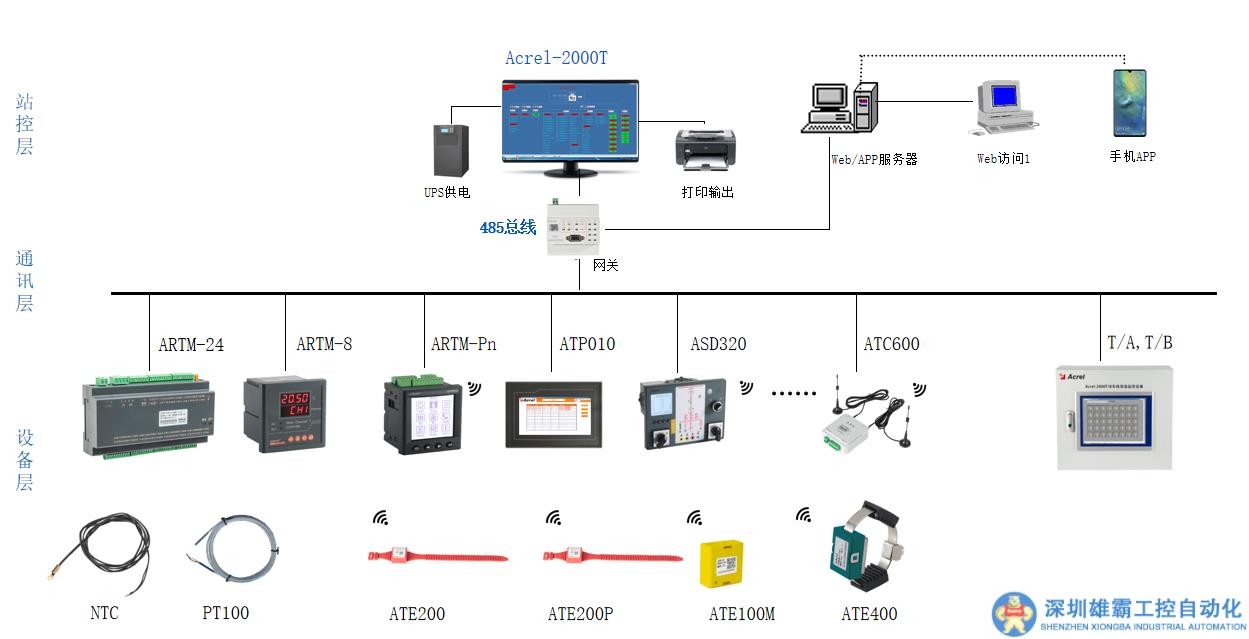 測溫系統(tǒng)主機Acrel-2000T安裝于值班監(jiān)控室,可以遠程監(jiān)視系統(tǒng)內(nèi)所有開關(guān)設(shè)備運行溫度狀態(tài)。系統(tǒng)具有以下主要功能: