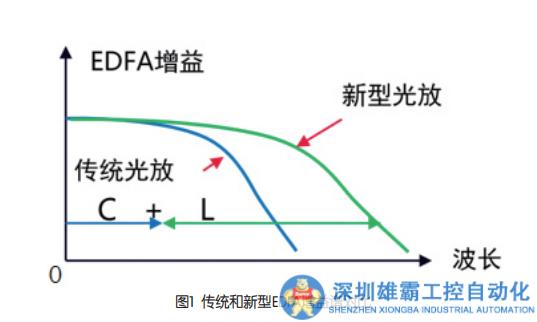 為了實(shí)現(xiàn)光層“C6T+L6T”超寬頻譜的傳輸,光放大器最重要的變革是帶寬的擴(kuò)展。摻鉺光纖放大器(EDFA)在波長超過1610nm之后放大效率劣化明顯,提高泵浦功率已經(jīng)無法抵消增益平坦濾波器(GFF)衰減帶來的功率損失,不能滿足對(duì)L波段的放大需求。目前業(yè)界通過改變光纖摻雜元素新配比、創(chuàng)新光纖制造流程工藝改善增益帶寬,提升飽和功率和噪聲系數(shù),如圖1所示。