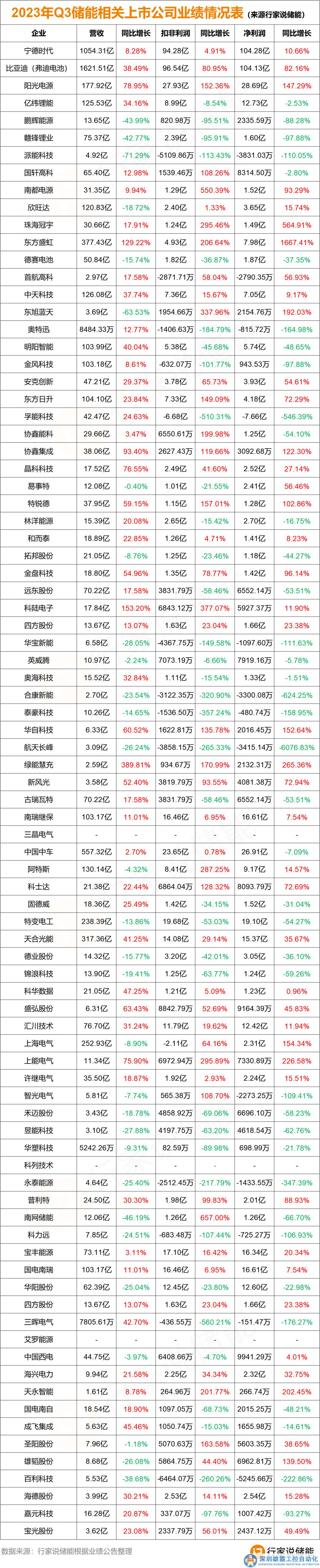前面我們明白了戶儲降溫邏輯,工商儲和大儲訂單情況。接下來我們再通過新鮮出爐的Q3業(yè)績情況,佐證儲能冷暖。