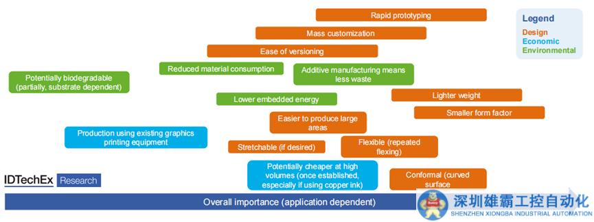 總之,印刷/柔性/混合電子產(chǎn)品的增長源于其能夠?qū)崿F(xiàn)新的應(yīng)用,甚至商業(yè)模式,如用于遠程健康監(jiān)測和智能封裝的電子皮膚貼片,將在未來十年推動導(dǎo)電油墨市場的增長。此外,許多新興應(yīng)用,如模內(nèi)電子(IME)、電子紡織品和高頻天線,都有特定的印刷和材料要求,這為電子產(chǎn)品的差異化提供了更多的機會。