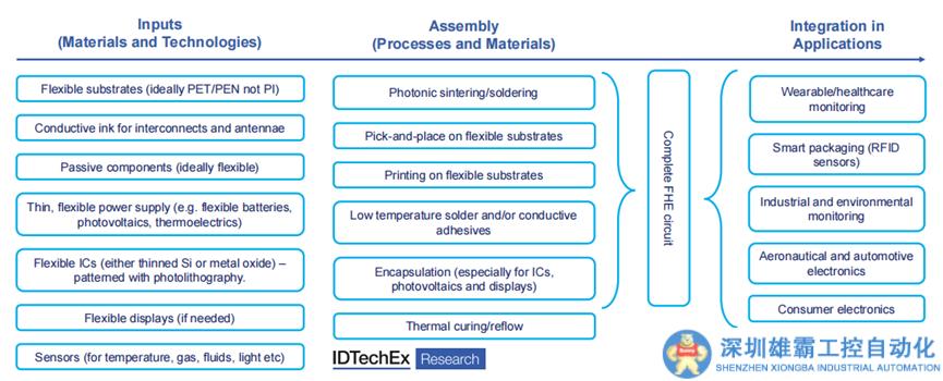 FHE旨在將傳統(tǒng),主要是剛性電子產(chǎn)品的加工能力與印刷電子產(chǎn)品的靈活性和低成本相結(jié)合。這需要以前獨立的制造業(yè)生態(tài)系統(tǒng)之間的合作,同時開發(fā)新的材料和加工方法,以彌補兩者之間的差距。