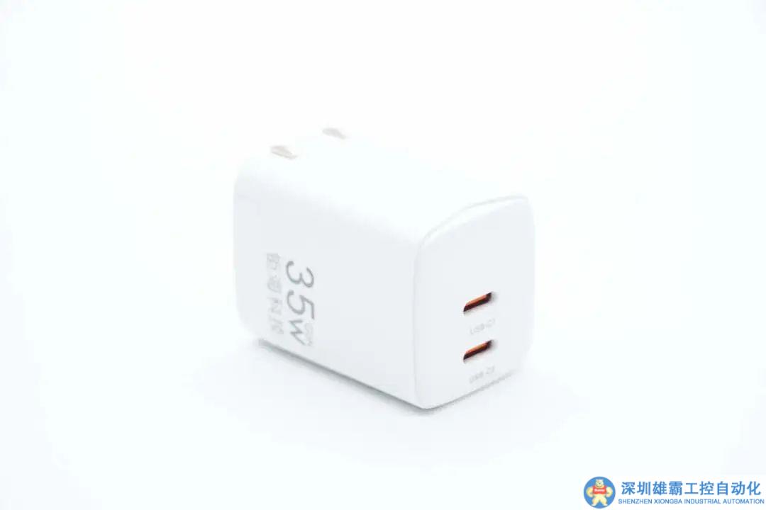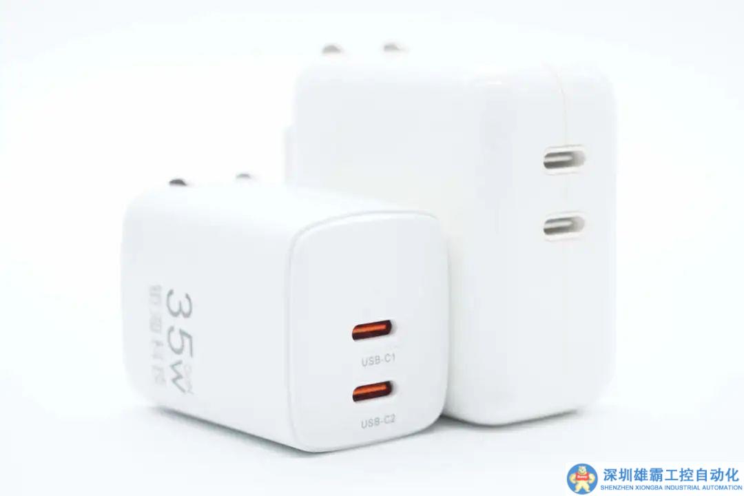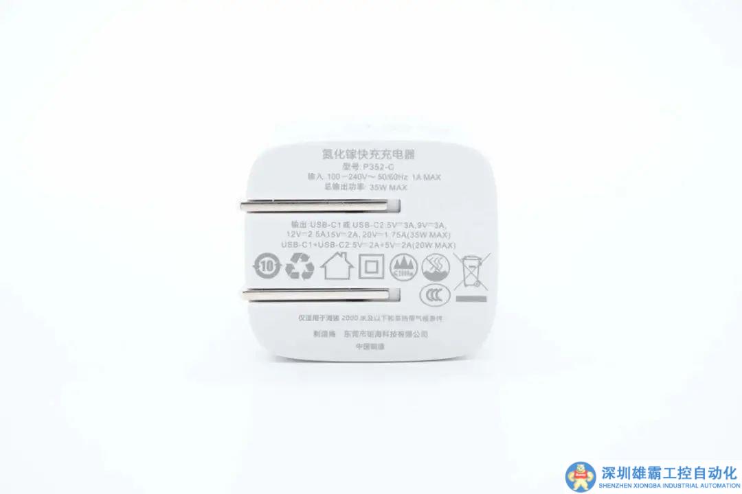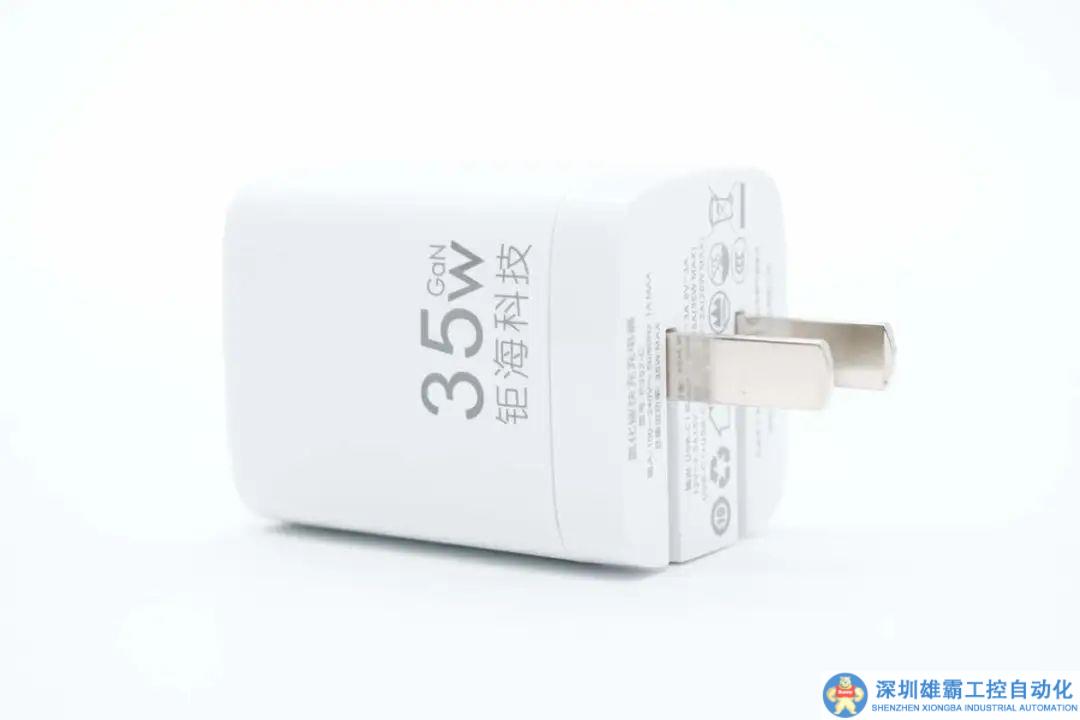 鉅??萍歼@款35W氮化鎵充電器采用方塊造型設(shè)計,白色機身。充電器采用折疊插腳,小巧便攜,易于收納。充電器為雙USB-C接口設(shè)計,單口輸出時支持35W快充,雙口同時輸出時降為每個接口5V2A,支持單臺設(shè)備快充,兩臺設(shè)備同時充電。