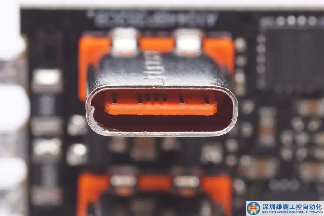 USB-C母座采用過孔焊接固定,橙色膠芯不露銅。