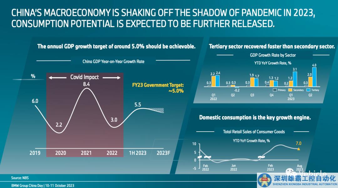 講智能化能夠贏之前,我們先看看大環(huán)境,畢竟智能化的載體還是車(chē),車(chē)是個(gè)大宗商品,他和經(jīng)濟(jì)發(fā)展是息息相關(guān)的。根據(jù)寶馬研究的數(shù)據(jù)2023年,中國(guó)宏觀經(jīng)濟(jì)正在擺脫疫情的陰影,消費(fèi)潛力有望進(jìn)一步釋放。從數(shù)據(jù)上來(lái)看2023年中國(guó)GPD目標(biāo)是 5.0%,通過(guò)目前數(shù)據(jù)看中國(guó)消費(fèi)品零售總額同比提升了。