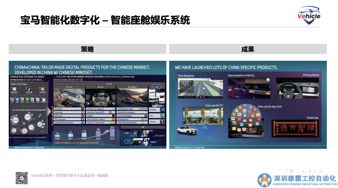寶馬表示在中國(guó),寶馬已經(jīng)為中國(guó)人群的使用,專(zhuān)門(mén)開(kāi)發(fā)的功能,已經(jīng)從2020年的54個(gè)逐年增加到2024年計(jì)劃高達(dá)221個(gè)。例如:中國(guó)定制化導(dǎo)航,微信深度集成,語(yǔ)音智能助手,ETC,中國(guó)互聯(lián)網(wǎng)應(yīng)用程序,節(jié)日小程序等。對(duì)于寶馬這個(gè)節(jié)日小程序,我是挺驚嘆的,應(yīng)該在2020年左右,大家都談我們的車(chē)子能夠支持網(wǎng)聯(lián)以及OTA,寶馬彩蛋類(lèi)的節(jié)日小程序,顯然廣而告之了他的網(wǎng)聯(lián)以及OTA功能。
