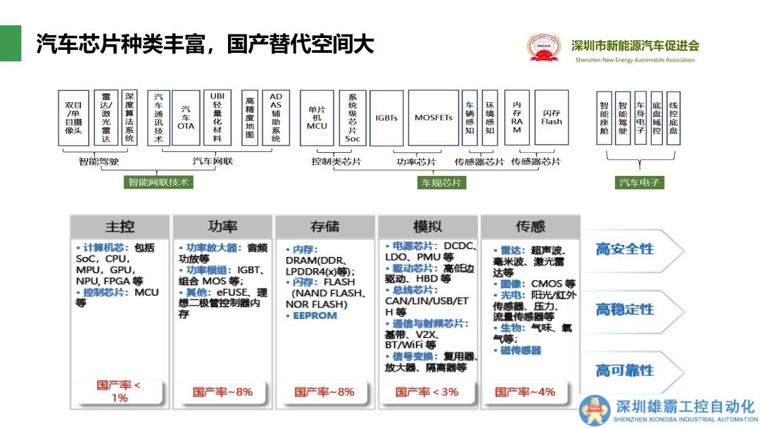 汪家紅提出,在電動智能化過程中,計算、功率、通信、存儲芯片和傳感器等汽車芯片的使用量會大幅增長,并帶來大量國產替代機會。但不可否認的是,目前國內芯片公司滲透進度較慢,車規(guī)級芯片國產化率較低,對海外依賴程度較高,汽車半導體國產化進程亟待加速。
