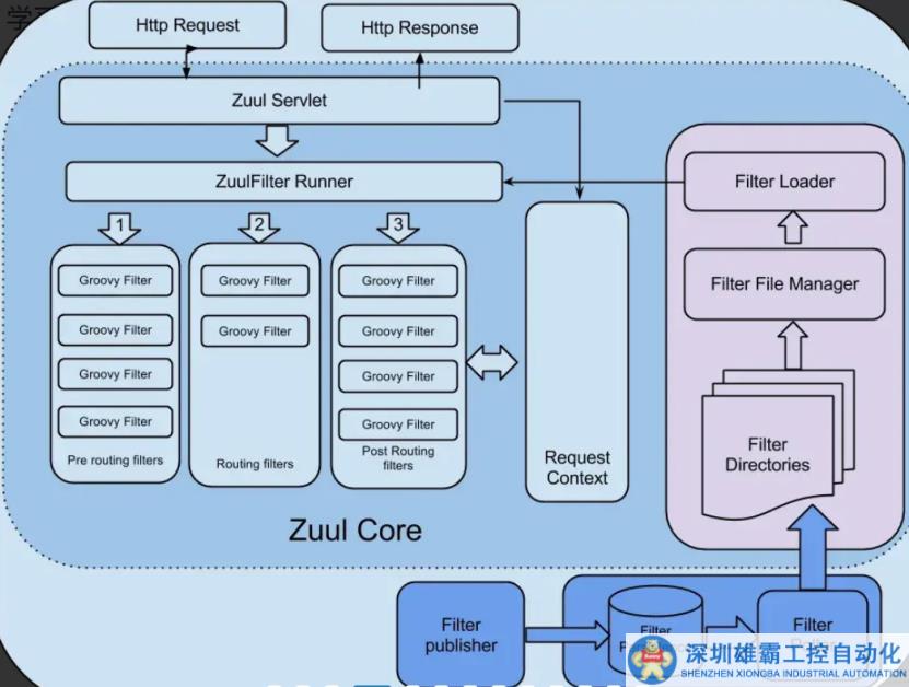 過濾器之間用虛線分開是因?yàn)檫^濾器可能會(huì)在發(fā)送代理請(qǐng)求之前 (“pre”) 或之后(“post”) 執(zhí)行業(yè)務(wù)邏輯。Filter在“pre”類型的過濾器可以做參數(shù)校驗(yàn)、權(quán)限校驗(yàn)、流量監(jiān)控、日志輸出、協(xié)議轉(zhuǎn)換等,在“post”類型的過濾器中可以做響應(yīng)內(nèi)容、響應(yīng)頭的修改,對(duì)日志的輸出、流量監(jiān)控等有著非常重要的作用。