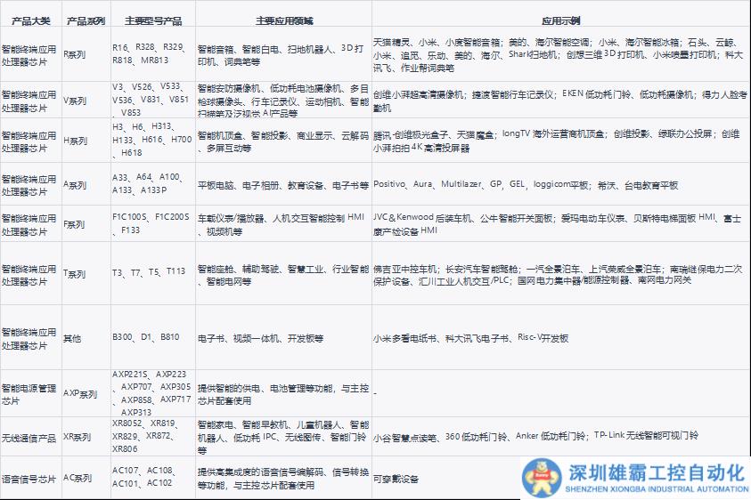 全志科技主要芯片產(chǎn)品下游應(yīng)用領(lǐng)域及應(yīng)用示例,來源:與非研究院整理