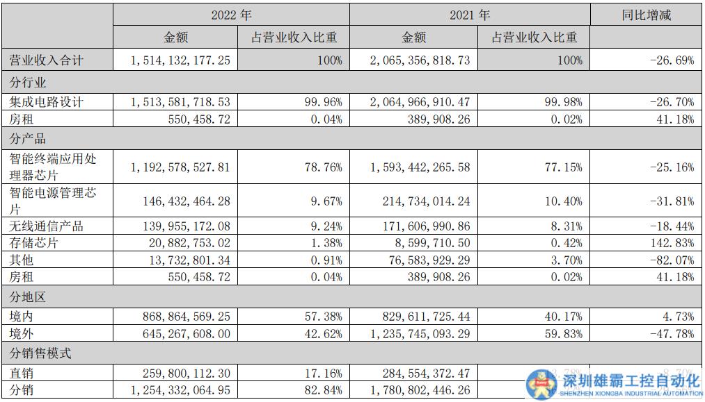 營業(yè)收入表,來源:全志科技2022年年報