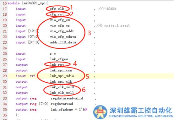 如圖2所示,就是配置LMK04821存器的單元,信號定義如下: