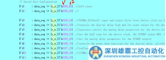 設(shè)計中,我們需要按照順序配置126個寄存器,也就是說SPI要執(zhí)行126次。因此,在代碼實現(xiàn)過程中,注意寄存器配置的順序,并且保證每個寄存器都準(zhǔn)確無誤的配置完成,才能進行下一個寄存器的配置。如果在設(shè)計中,要求LMK004821實現(xiàn)不同的功能,當(dāng)配置的寄存器個數(shù)不一致時,在v文件中更改圖6所示的參數(shù)即可。