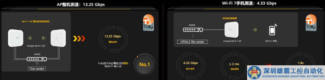 技術(shù)變革,能力躍升。在標(biāo)準的開道護航下,華為發(fā)布了業(yè)界首款企業(yè)級Wi-Fi 7 AP AirEngine 8771-X1T,該產(chǎn)品支撐動態(tài)變焦智能天線,內(nèi)置12條空間流,整機空口速率可達18.67Gbps,逼近Wi-Fi 7的理論速率。今年8月,華為在美國Tolly實驗室完成了AirEngine 8771-X1T的性能測試。Tolly出具的測試結(jié)果顯示,華為AirEngine 8771-X1T顛覆了所有歷史紀錄的Wi-Fi性能測試數(shù)據(jù),單終端峰值性能高達4.33Gbps,時延低至2ms,整機極限性能高達13.25Gbps,創(chuàng)下了全球最快紀錄!