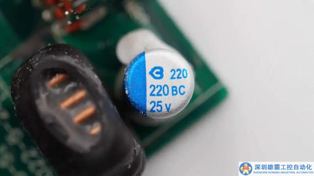 USB-A口輸出濾波電容來自綠寶石,BC系列快充專用固態(tài)電容,規(guī)格為220μF 25V。