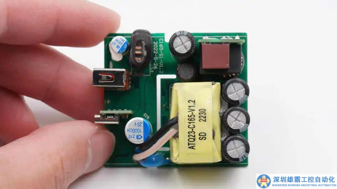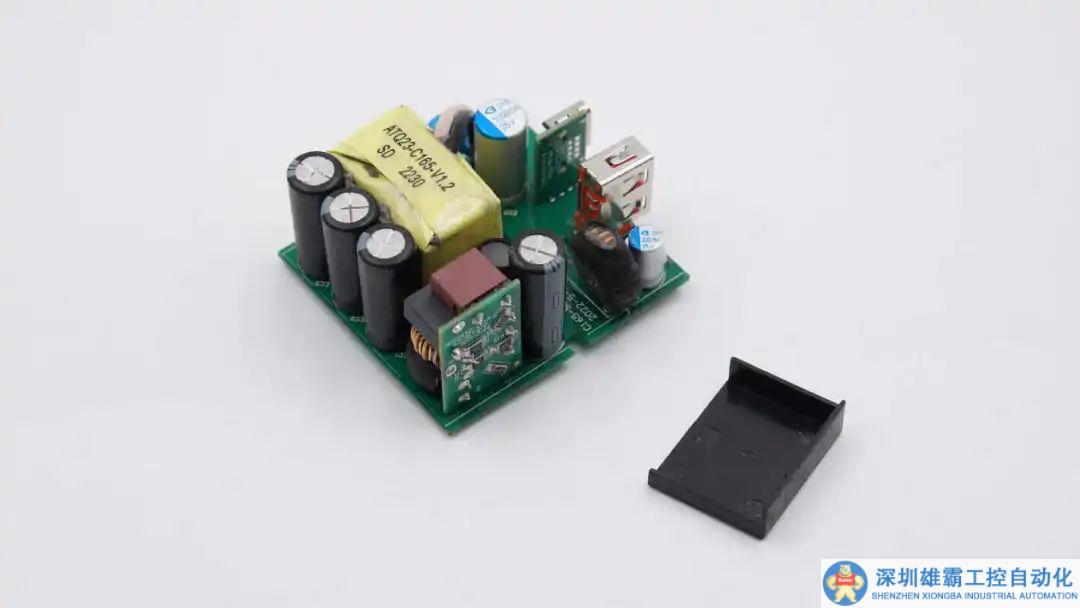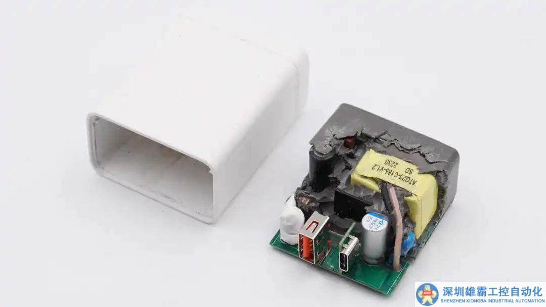 PCBA模塊背面焊接整流橋,初級(jí)主控芯片,氮化鎵開關(guān)管,協(xié)議芯片,降壓芯片以及反饋光耦等元件。