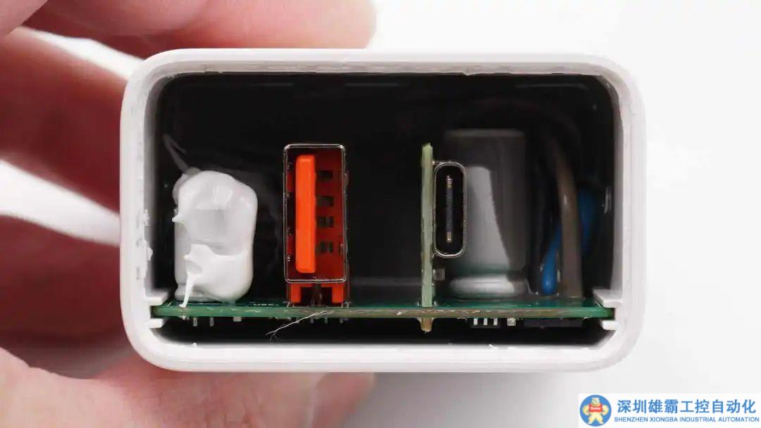 充電器內(nèi)部采用綠寶石高壓電解電容和固態(tài)電容,低壓MOS管來自真茂佳。充電器內(nèi)部灌膠填充,增強(qiáng)耐候性和可靠性,整體做工用料不錯(cuò)。