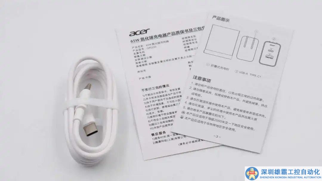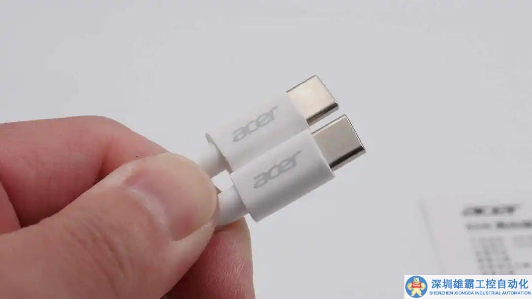 附帶數(shù)據(jù)線是C to C線,通體白色,線頭外殼印有宏碁的英文品牌logo。