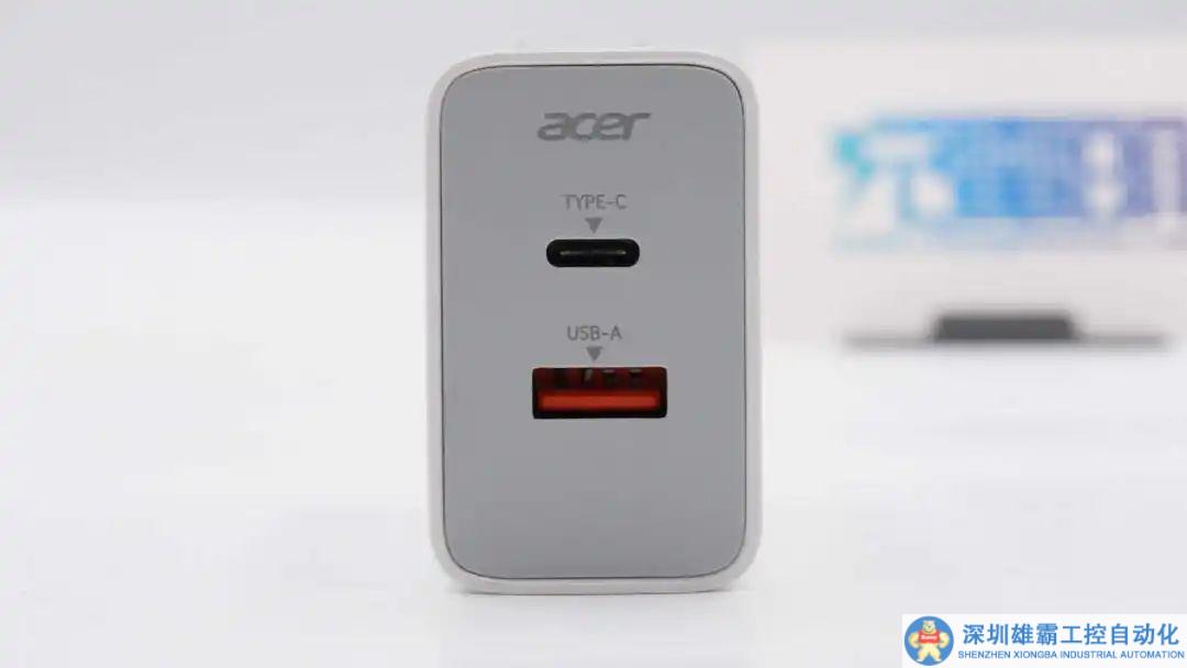 機(jī)身頂部外殼為灰色,配備1A1C雙輸出接口,并印有acer品牌。
